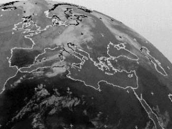 von Wolkenbergen über Europa hinweg. Im Internet dagegen